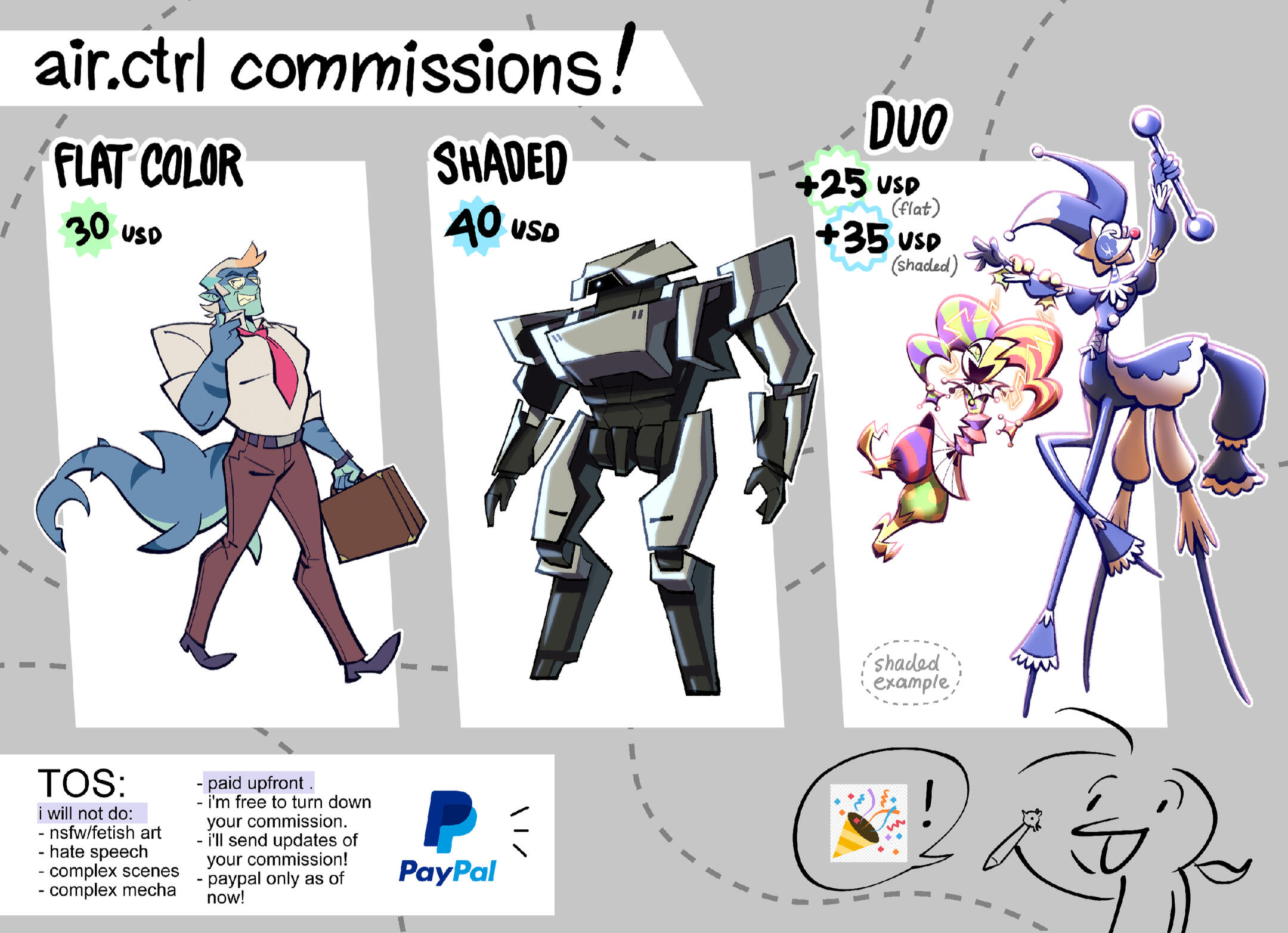 I WILL NOT DRAW: nsfw/fetish art, hate speech, problematic content, complex scenes, complex mecha.